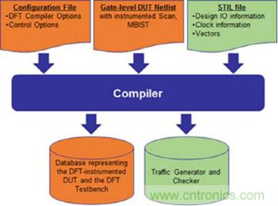 用于硬件加速仿真的 DFT App 改變了硬件加速器在開發(fā)階段的編譯流程和運行時間。這將為編譯流程和運行時間帶來重大變化。具有掃描和 MBIST 結(jié)構(gòu)的門級設(shè)計被載入硬件加速仿真的編譯器。編譯器創(chuàng)建了用于讀取Stil文件中測試向量的測試結(jié)構(gòu),然后將這些向量應(yīng)用到可綜合的待測器件 (DUT) 以及進行輸出比較。編譯器將用戶網(wǎng)表重新編譯并合成到一個能夠兼容硬件加速仿真的結(jié)構(gòu)化描述中。編譯器創(chuàng)建了用于讀取Stil文件中測試向量的測試結(jié)構(gòu),然后將這些測試向量用到可綜合的待測設(shè)計上,再將網(wǎng)表重新編譯并合成到一個能夠兼容硬件加速仿真的結(jié)構(gòu)化描述中。測試控制架構(gòu)還包括比較輸出的機制。參見圖 1。