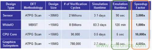 當(dāng)設(shè)計尺寸達到數(shù)億門時,基于軟件仿真器的驗證對于門級檢查而言速度過于緩慢。DFT 方法只會讓事情變得更糟。如果這些負擔(dān)還能夠應(yīng)付,那么優(yōu)先使用軟件仿真陣列來推進流片有助于設(shè)計工程師的工作,但會為測試工程師帶來阻礙。芯片通常只進行極少的 DFT 驗證就進行流片,而在流片后才執(zhí)行徹底的 DFT 測試,這時要修復(fù)設(shè)計缺陷為時已晚。