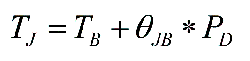 接點溫度可透過機板溫度、LED的功率發(fā)散、以及機板與LED之間的熱阻來求算。其關系如公式3所示。
