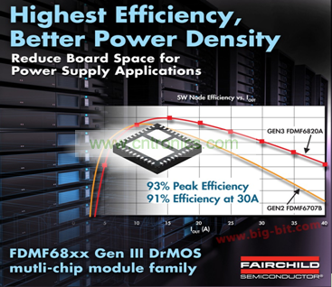 當(dāng)能效標(biāo)準(zhǔn)逐漸成為電子產(chǎn)品新的緊箍咒,各大電源半導(dǎo)體廠商不得不面對電源管理技術(shù)的全新挑戰(zhàn)。飛兆半導(dǎo)體 FDMF68xx Gen III DrMOS多芯片模塊(MCM)系列經(jīng)設(shè)計(jì)能夠降低輸出感量和減少輸出電容器數(shù)目,與普通分立器件解決方案相比,該系列能夠節(jié)省多達(dá)50%的線路板空間,并提高效率,以期滿足新能源標(biāo)準(zhǔn)要求。使用飛兆半導(dǎo)體的高性能PowerTrench® MOSFET技術(shù),F(xiàn)DMF68xx系列能夠顯著減少開關(guān)振鈴(switch ringing),省去大多數(shù)降壓轉(zhuǎn)換器應(yīng)用中使用的緩沖器電路。FDMF68xx系列配合針對刀片式服務(wù)器、高性能筆記本電腦、游戲主機(jī)和負(fù)載點(diǎn)(point-of-load)模塊的新能源標(biāo)準(zhǔn)和系統(tǒng)規(guī)范,正在推動(dòng)業(yè)界對更高效率、更大電流、更高開關(guān)頻率以及更大功率密度的需求。