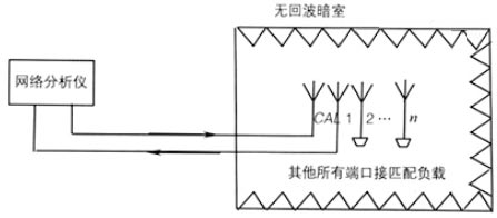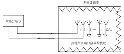 (3)將測量系統(tǒng)與被測天線的校準端口和第i個饋電端口相連接,被測天線的其余端口一律接匹配負載,在工作頻率范圍內進行傳輸系數(shù)S(i,CAL)的測量;