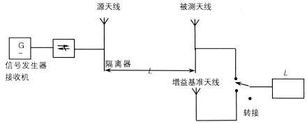 (1)增益基準天線與源天線對準,通過轉接,使增益基準天線與接收機相連接,此時接收機接收功率電平為P1(dBm)。