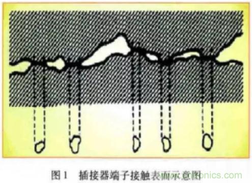 插接器端子接觸界面的附加電阻由以下兩部分組成:
