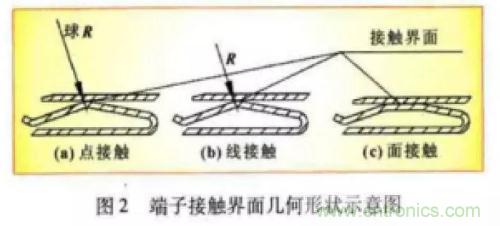 幾何形狀的影響端子接觸界面幾何形狀對接觸電阻的影響主要是由于不同的幾何形狀會(huì)形成不同的宏觀接觸面積。