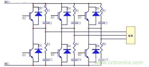 在集電極和發(fā)射極之間并接RC濾波電路,可有效地抑制關(guān)斷過(guò)電壓和開(kāi)關(guān)損耗。但在實(shí)際應(yīng)用中,由于DC電源前端的浪涌突波會(huì)使集電極過(guò)電壓,并使RC濾波電路部分的抑制效果生效,IGBT通常都會(huì)被擊穿或者短路。另外,在電機(jī)起動(dòng)時(shí),由于起動(dòng)時(shí)的大電流,在主線路中分布的電感亦會(huì)造成較大程度的感應(yīng)過(guò)電壓,使IGBT損壞。同時(shí),電機(jī)勵(lì)磁造成的感應(yīng)電動(dòng)勢(shì),對(duì)電路的破壞也相當(dāng)?shù)卮?mdash;—工程師們經(jīng)常沒(méi)有考慮到這一點(diǎn)。