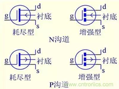增強(qiáng)型:VGS=0時(shí),漏源之間沒有導(dǎo)電溝道,在VDS作用下無iD;耗盡型:VGS=0時(shí),漏源之間有導(dǎo)電溝道,在VDS作用下iD。