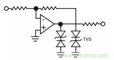 圖4:運(yùn)放的輸出級(jí)保護(hù)