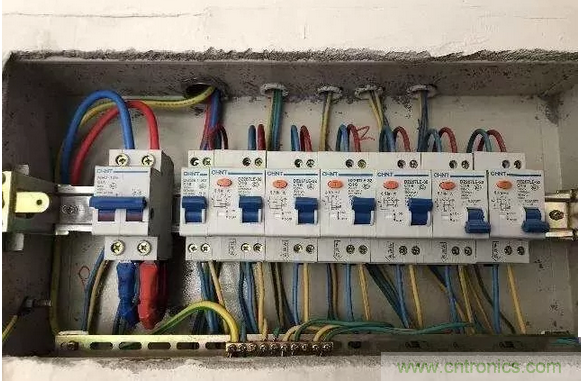 空氣開關(guān)作為總開關(guān)安裝在最前面,后面除了照明回路都使用漏電開關(guān)的安裝方式優(yōu)點很明顯:首先某個回路漏電時只是這個回路跳閘,不會跳總閘,不影響我們使用;其次由于它每次都是跳的相應的分開關(guān),所以很容易找到哪個回路的電路出現(xiàn)故障,故障排查方便;最后它也不會誤動作;