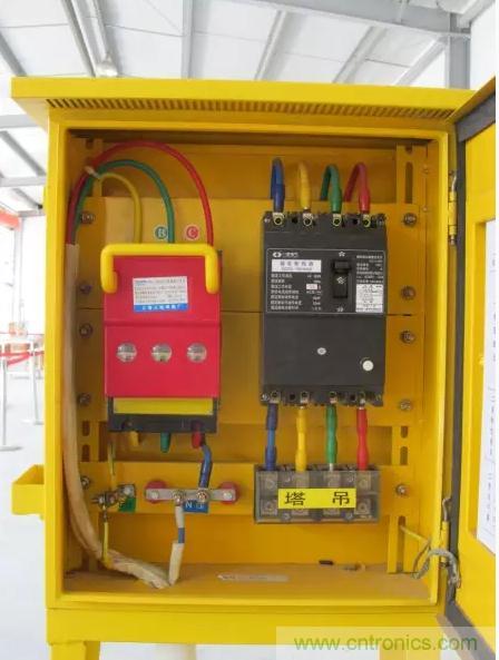 5、總配電箱的電器具備電源隔離,正常接通與分?jǐn)嚯娐罚约岸搪?、過(guò)載、漏電保護(hù)功能。(JGJ46-2005第8.2.2條)