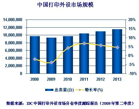 IDC中國計(jì)算機(jī)系統(tǒng)研究部高級(jí)分析師陳穎認(rèn)為,在當(dāng)前的經(jīng)濟(jì)環(huán)境下,中國打印外設(shè)市場(chǎng)形勢(shì)仍然不容樂觀。根據(jù)IDC的預(yù)測(cè),2009年中國打印外設(shè)市場(chǎng)相比2008年仍將繼續(xù)下滑,整體市場(chǎng)出貨量增長率為-3.5%。但是,在未來一段時(shí)期中國市場(chǎng)發(fā)展仍存在以下幾個(gè)亮點(diǎn):
