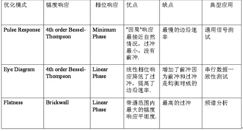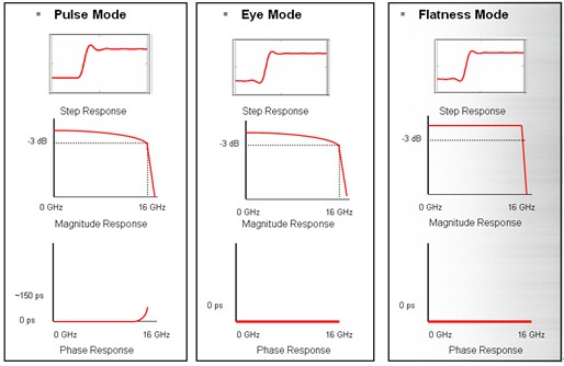 當(dāng)今的高帶寬數(shù)字示波器都會(huì)采取某種脈沖響應(yīng)優(yōu)化方式去降低幅頻響應(yīng)或相頻響應(yīng)對(duì)被測(cè)信號(hào)的負(fù)面效應(yīng),業(yè)界應(yīng)用最廣泛的脈沖響應(yīng)方式有三種,分別為Pulse Mode、Eye Mode和Flatness Mode。