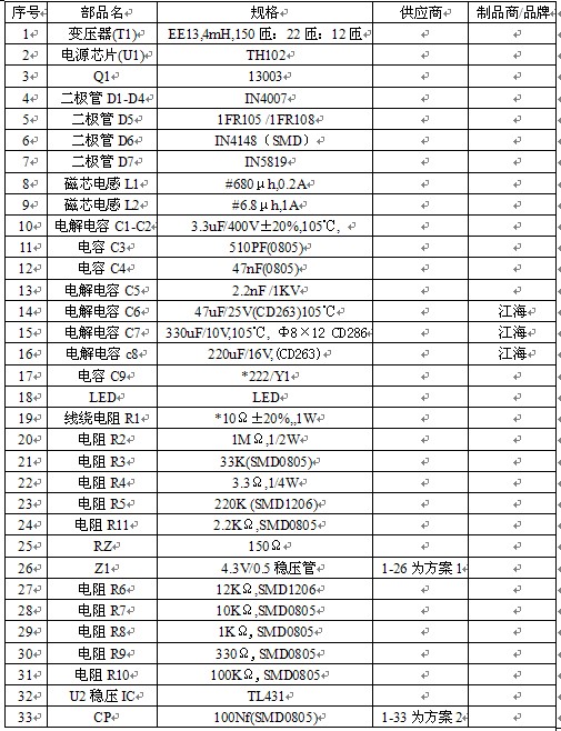 TH102、TNY264、PIVer12A變壓器設(shè)計(jì)基本相似,而且價(jià)格也相當(dāng),變壓器有主繞組、參考繞組、和輸出繞組,繞組之比需考慮退磁電壓、TH102或TNY264或PIVer12A的工作電壓、輸出電壓、整流二極管壓降,退磁電壓設(shè)計(jì)還需顧及整流二極管耐壓;TH102變壓器設(shè)計(jì),輸出整流二極管1N5819,EE13磁心,退磁電壓75V,工作電壓10V,輸出電壓5.5V,則繞組之比為150:22:12,主繞組4mH。