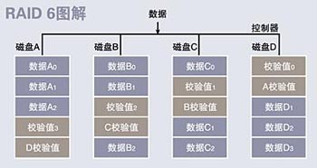 由于需要進行額外的計算并將校驗碼寫入第二個磁盤,RAID6的速度要比RAID5低一些,它并沒有在市場上取得成功,主要是因為沒有可以與之配合的行業(yè)標(biāo)準(zhǔn)。也就是說,到現(xiàn)在為止,這種實施方式仍然是一種私有標(biāo)準(zhǔn)。