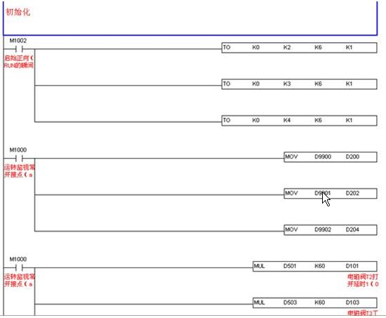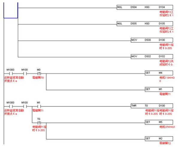 PLC程序主要分為以下基本:初始化部分、模擬量采集部分、數據處理部分、邏輯控制部分(手動和自動)、報警部分等組成。圖4為部分PLC程序設計。