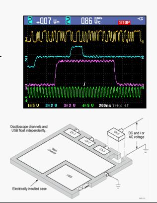 THS3000系列產(chǎn)品型號(hào)分為帶寬100 MHz、最大采樣率2.5 GS/s和200 MHZ、5 GS/s兩種,性能達(dá)到同類最佳。具備四個(gè)隔離通道,每通道10,000個(gè)樣點(diǎn)的記錄長(zhǎng)度使用戶能夠以高采樣率捕獲大量信號(hào)信息,從而清楚地看到信號(hào)細(xì)節(jié),快速發(fā)現(xiàn)信號(hào)異常。THS3000示波器上的各個(gè)通道與機(jī)身接地以及各通道相互之間是隔離的。另外,用于數(shù)據(jù)存儲(chǔ)、儀器設(shè)置和PC通信的外部USB輸入也是隔離的。這讓用戶能夠安全地使用隨附的10X探頭進(jìn)行電壓高達(dá)300 VRMSCAT III的浮動(dòng)測(cè)量,或使用可選探頭進(jìn)行電壓高達(dá)1000 VRMSCAT II的浮動(dòng)測(cè)量。該儀器具有600 VRMSCAT III 防護(hù)等級(jí)的輸入(BNC連接器至大地),以保證安全的高壓測(cè)量。