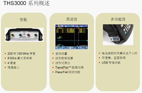 對(duì)于便攜式示波器,除了更高的性能和安全隔離規(guī)格,市場(chǎng)還需要更靈活易用的產(chǎn)品。THS3000可以實(shí)現(xiàn)TrendPlot分析,帶測(cè)量數(shù)據(jù)記錄(任意 4 個(gè)測(cè)量的繪圖和回放);可用于進(jìn)行自動(dòng)屏幕捕獲的波形記錄(每個(gè)觸發(fā)事件 100 段,1 鍵回放和內(nèi)置/USB 存儲(chǔ));波形監(jiān)測(cè)和 pass/fail 測(cè)試(用戶可定義的基準(zhǔn),1-4 通道捕獲和回放),因而可以快速而高效地幫助分析系統(tǒng)。