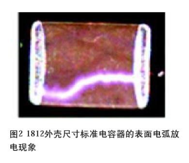 這些電容器的電容值通常是相同的,所以在這種情況下每個(gè)電容器的有效電壓(VC)都等于施加在該器件上的總電壓(VT)除以電容器的數(shù)目(n)即VC=VT/n。利用這種方法可以降低每個(gè)電容器組的有效電壓。高壓電路的設(shè)計(jì)者還利用這個(gè)原理,通過串聯(lián)單個(gè)電容器來降低每個(gè)電容器的電壓。不過,在兩種情況下總電容(CT)都將會(huì)下降:1/CT=(1/C1+1/C2…+1/Cn)利用一臺(tái)高速相機(jī)觀察到了另一個(gè)重要的問題,即在一個(gè)標(biāo)準(zhǔn)電容器設(shè)計(jì)上施加一個(gè)電壓之后出現(xiàn)的表面電弧放電現(xiàn)象,如圖2所示。“浮動(dòng)電極”串聯(lián)設(shè)計(jì)可以有效地解決表面弧的問題。不過,與如前所述的標(biāo)準(zhǔn)設(shè)計(jì)相比,其主要弊端在于其較低的容量。