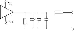 按建造設(shè)計規(guī)范要求,遙測輸出采用了雙向限幅電路和限流保護(hù)措施,保護(hù)電路如圖5所示。