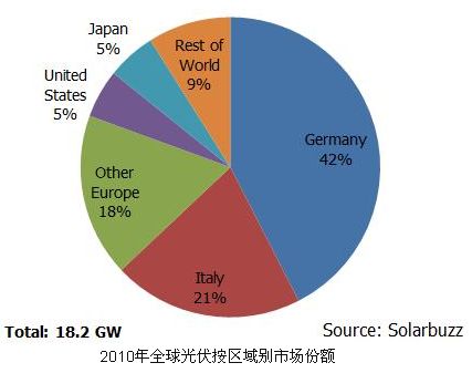 根據 Solarbuzz 最新年度光伏市場報告2011 Marketbuzz,2010年全球光伏市場安裝量達到18.2GW,相較于去年增幅139%。