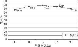 所以,在兩個(gè)原邊開關(guān)管都處于斷態(tài)期間內(nèi),其中一個(gè)同步整流管的體二極管必須導(dǎo)通進(jìn)行續(xù)流。由于此時(shí)的負(fù)載電流不大,體二極管上的功率損耗也不明顯。隨著負(fù)載的加大,原邊的振蕩會(huì)逐漸增大,直到能夠開通副邊同步整流管。圖4所示的是負(fù)載電流Io=20A時(shí)的變壓器原邊電壓波形以及兩個(gè)同步管驅(qū)動(dòng)波形。當(dāng)原邊開關(guān)管關(guān)斷時(shí),存在于漏感中的能量足夠以開通兩個(gè)同步管。然而同步管的關(guān)斷只能通過外加驅(qū)動(dòng)信號(hào)來實(shí)現(xiàn)。它們分別來自于原邊開關(guān)管的門極驅(qū)動(dòng)vg1和vg2。圖5是測得的變流器的效率曲線圖。