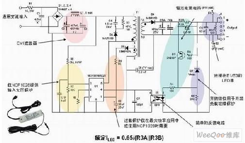 圖1:安森美半導體離線式第二代LED驅(qū)動器NCP1014/1028的應(yīng)用示意圖。
