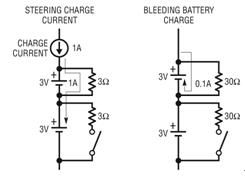利用跨電池組中每一節(jié)電池的旁路電阻器和開(kāi)關(guān)實(shí)現(xiàn)無(wú)源平衡硬件。平衡電阻器的使用一般采用兩種方式之一 (圖 2)。電阻器可用來(lái)導(dǎo)引充電電流繞過(guò)電池,以便具較低充電狀態(tài) (SOC) 的電池能以較高的速率保持充電,而不會(huì)使具有高 SOC 的電池有過(guò)充電和損壞的風(fēng)險(xiǎn)。該電阻器也可用來(lái)使具較高充電狀態(tài)的電池泄放過(guò)多的電荷,以使這些電池與具較低 SOC 的電池實(shí)現(xiàn)均衡。