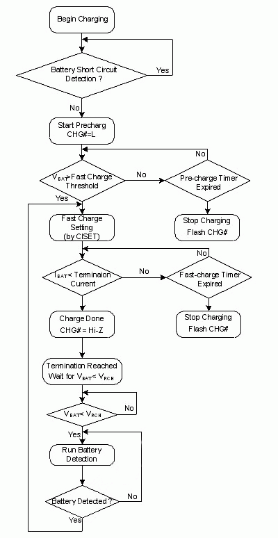 然而,當電池故障時,電池可能無法儲存電能,電壓抑不會升高,所充入的能量轉變成熱,除了依靠過溫度保護機制之外,IC內部亦具有超時定時器,無論此時電池電壓狀態(tài)如何,只要超過設定充電時間后,隨即關閉充電器,以達到多重保護使用者之功能。