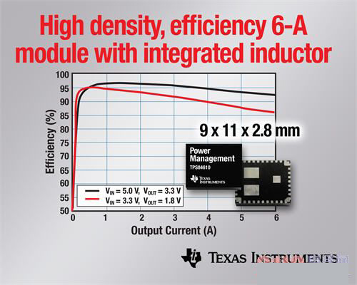 日前,德州儀器 (TI) 宣布推出集成電感器的最新 6 V、6 A 同步集成型電源模塊,可實(shí)現(xiàn)每立方英寸 750 瓦特、峰值電源效率高達(dá) 97% 的業(yè)界最佳性能。TPS84610 支持 12°C/W 的優(yōu)異散熱性能,比同類競爭模塊強(qiáng) 40%。該器件在單個(gè)引線框架中高度整合了電感器及無源組件,只需 3 個(gè)外部組件便可獲得完整的、易于設(shè)計(jì)的 150 平方毫米解決方案,從而簡化電信電源的 DSP 及 FPGA 設(shè)計(jì)。