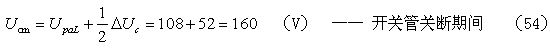 這里順便說(shuō)明一下,為什么(53)式中的分流系數(shù)取值為0.5,而不是其它數(shù)值。因?yàn)?,分流系?shù)r的取值范圍是0~1,它是一個(gè)動(dòng)態(tài)系數(shù),它的大小,除了與輸入電壓和輸出功率和RCD電路中電容、電阻的大小有關(guān)外,還與開(kāi)關(guān)管的關(guān)斷時(shí)間,以及電流大小有關(guān)系。