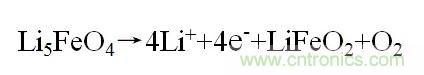 在這個過程中,大部分的鋰離子都無法可逆的再次嵌入到LiFeO2中,但是這些鋰離子可以用于抵消負極帶來的不可逆容量損失。因此在使用中我們只需要在正極材料中加入少量的Li5FeO4即可。