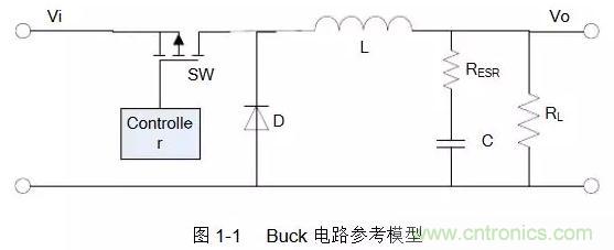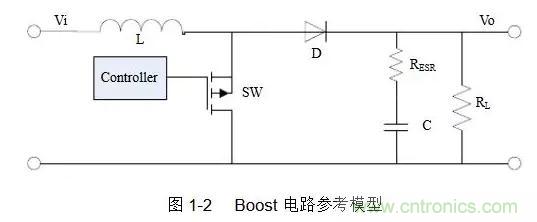 Buck型和Boost型開關(guān)電源具有不同的拓?fù)浣Y(jié)構(gòu),本文將使用如圖1-1、1-2所示的電路參考模型[1]: