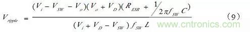 對像手機(jī)、PMP、數(shù)據(jù)卡這類的消費(fèi)類電子用到的低功率開關(guān)電源,V(sw)和V(D)都在0.1V~0.3V之間,因此可對公式(7)、(12)進(jìn)行簡化,得到: