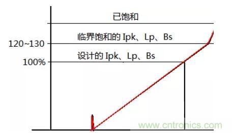 優(yōu)化方向是Bs值最優(yōu)化,約束條件是磁芯品質(zhì),可按 Bs(或原邊電感量 Lp)擴(kuò)大20%~30%余量后 Ipk 波形可見(jiàn)臨界飽和跡象為判據(jù)確定Bs取值。更高的Bs取值,對(duì)應(yīng)更小的氣隙、更小的漏感,更小的尖峰電壓、可能更高的整機(jī)效率。但太高的Bs取值會(huì)使上述余量更小、磁芯的品質(zhì)控制困難、成品率降低。