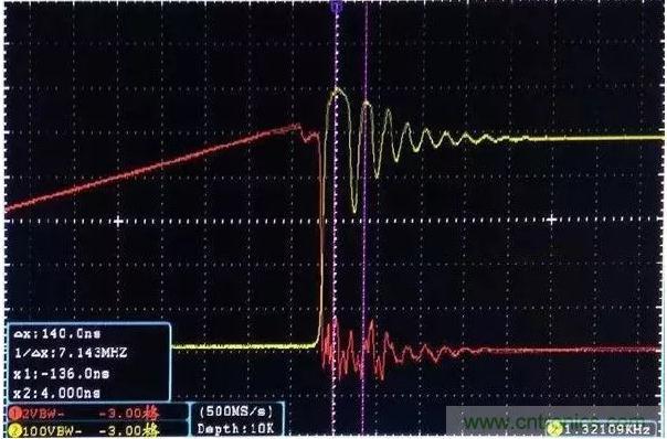 c)必須使用耐壓高出1.5~2倍的開(kāi)關(guān),其飽和壓降大幅度提高,導(dǎo)通損耗劇增。