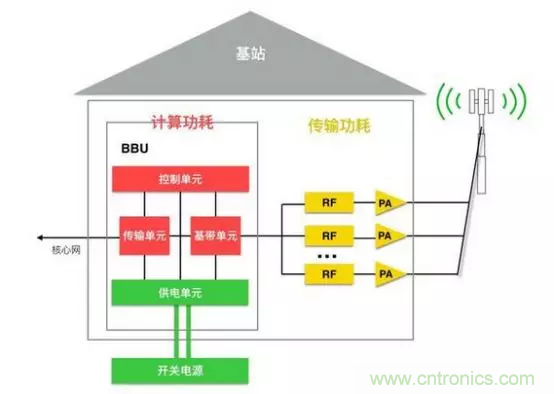 據(jù)專業(yè)人士分析,部署初期,5G網(wǎng)絡(luò)主要采用CU和DU合設(shè)+AAU的設(shè)備方案,即在基站側(cè)采用BBU+AAU單元的建設(shè)模式。其中,BBU單元安裝在機房或室外機柜內(nèi),集成RRU和大規(guī)模天線陣列功能的AAU單元安裝在室外天面。由于5G采用MIMO技術(shù),BBU功耗將比現(xiàn)網(wǎng)4G系統(tǒng)的BBU功耗增加2倍,AAU功耗將比現(xiàn)網(wǎng)4G系統(tǒng)的AAU功耗增加2-3倍。