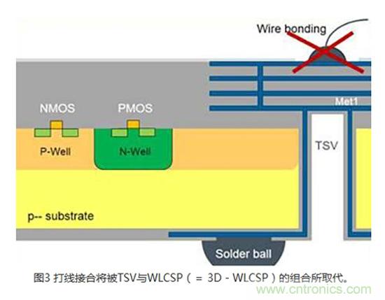 3D積體技術,特別是來自領導晶圓代工業(yè)者的特殊模擬TSV技術,在結(jié)合正面或背面重新布局層(RDL)后,由于互連更短且能實現(xiàn)更高的整合度,因此能以更小的占板面積提供更多功能。 特別是小尺寸的TSV封裝技術(總高度在0.32mm范圍內(nèi))能解決智能手表或智能眼鏡等穿戴式裝置的的小尺寸需求。